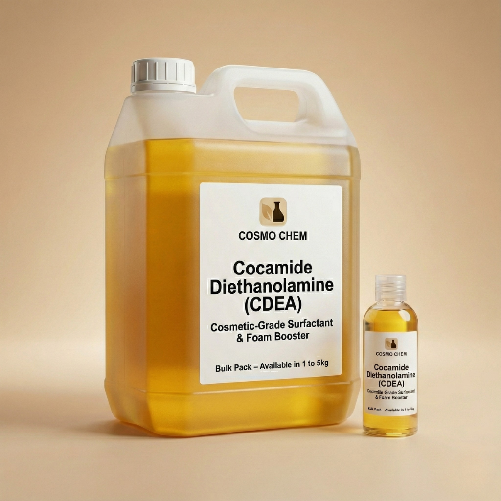CDEA-KD (Cocamide Diethanolamine) is a thick, viscous, yellowish liquid that serves as a cornerstone ingredient in the personal care and detergent industry. Chemically, it is a non-ionic surfactant produced by the reaction of coconut oil fatty acids with diethanolamine. As a leading CDEA-KD supplier in Pakistan, Cosmo Chem provides the “KD” grade, which is known for its high amide content and superior purity. It acts as a multi-functional agent, primarily valued for its ability to enhance the properties of the primary surfactant (like SLES) in a formula.