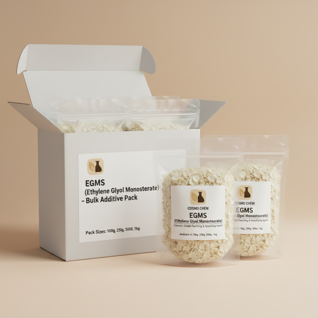 Create rich, creamy, and pearlescent textures in your cosmetic products with EGMS (Ethylene Glycol Monostearate) from Cosmo Chem. This high-performance opacifier and pearlizing agent is essential for formulating luxury shampoos, body washes, and lotions. Unlike simple thickeners, EGMS adds a brilliant crystalline shine and improves foam stability. We supply premium EGMS cosmetic grade flakes specifically for industrial manufacturers. By importing directly, we guarantee the most competitive EGMS (Ethylene Glycol Monostearate) price for bulk quantities. Available in standard industrial bags with nationwide delivery for all wholesale clients.